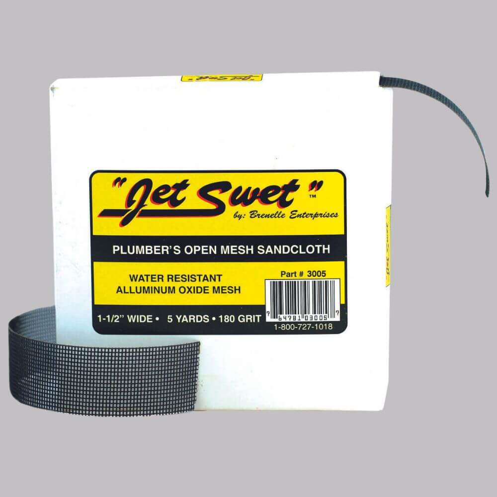 5 yard roll of Jet Swet™ brand, 180 grit, open mesh sand cloth. Formulated for the toughest, wettest, dirtiest jobs.