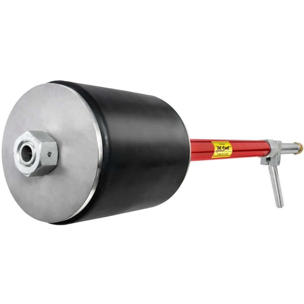 6″ FLO-THRU Jet Swet tool has a 3/4″ hole down the middle of it with a hose connection at the end of the tool. This allows the user to work in systems where the main water shut off is by-passing water and continually putting pressure into the system. The by-passed water flows through the Jet Swet and down the hose away from the soldering area.